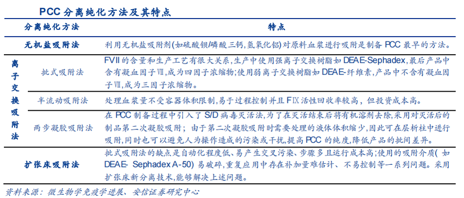 人凝血酶原复合物(PCC)在我国临床上广泛用于乙型血友病的治疗。PCC 是一种从正常人体血浆中分离出来的含有Ⅸ、Ⅱ、Ⅶ、Ⅹ等多种凝血因子,能加速血液凝固的静脉注射血浆蛋白制剂。因生产工艺及采用的离子交换树脂不同,浓缩物中FVII的含量有较大差别。根据FVII的含量可将PCC划分为四因子PCC以及三因子PCC。该制剂在临床上除了用于乙型血友病、肝病出血、维生素K依赖的凝血因子缺乏症、有抗-FⅧ的甲型血友病外, 还可用于替代传统的新鲜冰冻血浆逆转香豆素类抗凝剂过量而导致的各种出血性疾病的治疗等多种疾病。《血友病治疗中国指南(2020 版)》显示,病毒灭活的血源性凝血酶原复合物(PCC)为血友病B的替代治疗的首选药物之一。