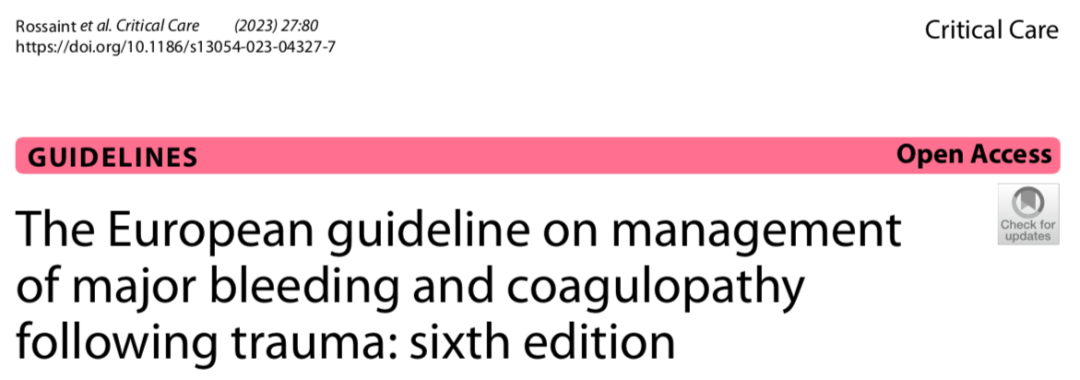 欧洲创伤后大出血和凝血病管理指南: 第六版