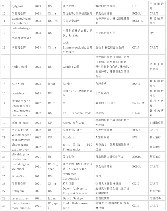 全球已有超70款CGT品种上市,包括CAR-T疗法、干细胞疗法、溶瘤病毒疗法、组织疗法和基因疗法等。