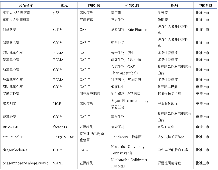 2003年全球首个基因治疗药物重组人p5腺病毒注射液(商品名:今又生/Gendicine)在中国获批;