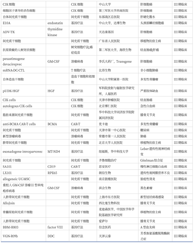 中国CGT临床三期以上产品已达40多款,其中6款CART获批上市,另有5款产品申报上市。随着国内研发投入的增加和技术不断成熟,预计将有更多的产品在中国市场获批。