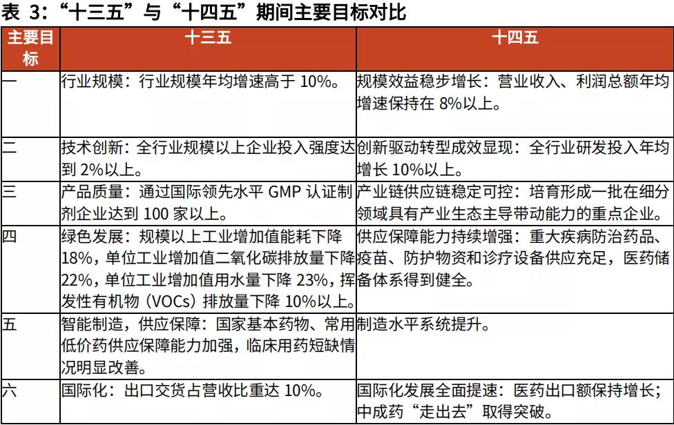 一是规模效益稳步增长。在全面分析“十三五”期间医药工业规模效益指标的基 础上,综合考虑国内外技术发展、政策变化等因素,《规划》提出“十四五”期 间医药工业营业收入、利润总额年均增速保持在8%以上,增加值占全部工业的比重提高到 5%左右,行业龙头企业集中度进一步提高。