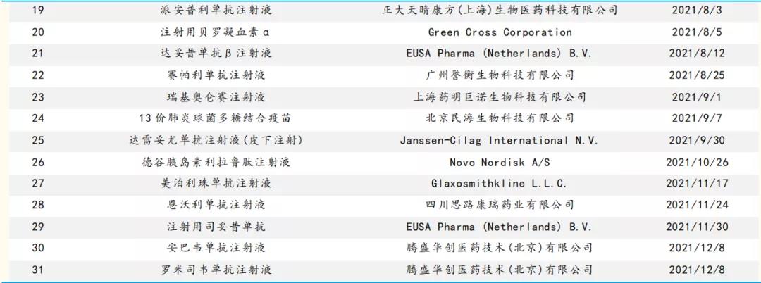 2021年生物制品新药概览