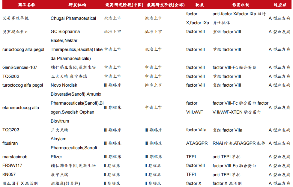 血友病新药研发情况