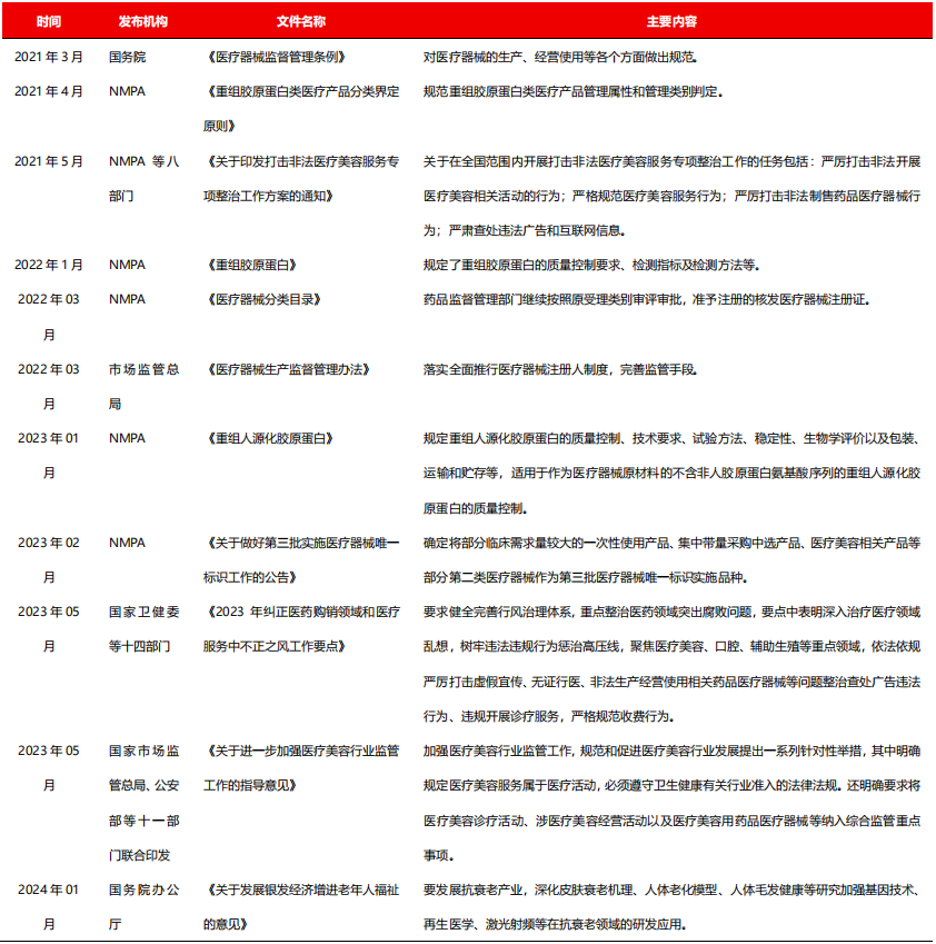 中国快速发展的医美市场,目前存在服务机构质量参差不齐产品定价混乱等行业不规范现象,近年通过从研发注册、生产、销售等各环节,颁布系列行业标准及政策法规,推动了行业进入“强监管时代”。进入“强监管时代”的中国医美市场,将提高产品取证上市的门槛,对生产企业的“合规化”经营提出更高要求从长期看也将推动医美再生抗衰注射剂行业的健康有序发展。