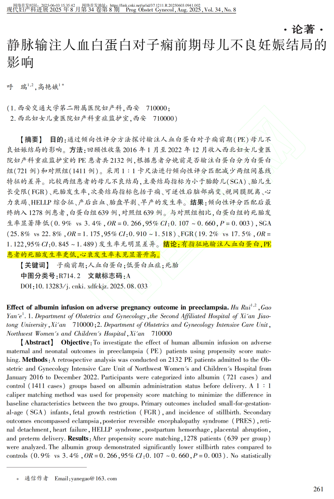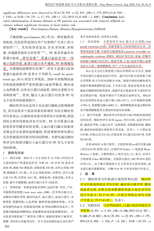 静脉输注人血白蛋白对子痫前期母儿不良妊娠结局的影响
