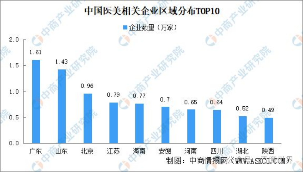 中商情报网数据显示,从区域分布看,广东的企业最多,山东、北京、江苏、海南等一线城市也紧随其后,一线城市发展最为强劲。